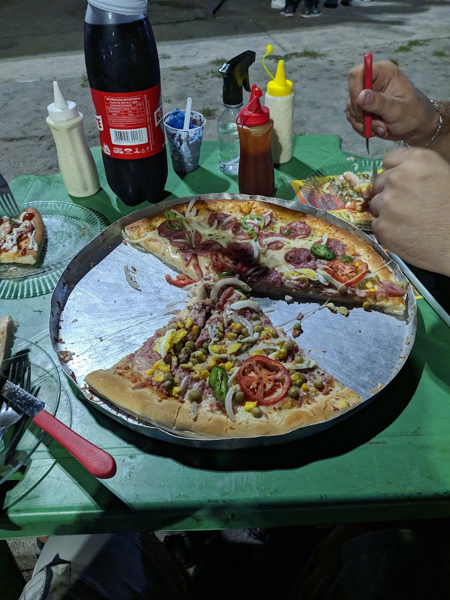 Pizzaria Amanda specializes in a variety of delicious pizzas that showcase a creative twist on classic flavors. Imagine sinking your teeth into a slice of their signature Margherita, where the gooey, melted mozzarella cheese perfectly mingles with fresh basil and tangy tomato sauce, creating a luscious burst of flavor with every bite. For those who crave something more adventurous, the Calabresa pizza offers a savory blend of spicy sausage and onions, capturing the essence of Brazilian pizza culture. Pair your meal with a side of their Garlic Bread – a crispy, aromatic delight that introduces the meal beautifully.